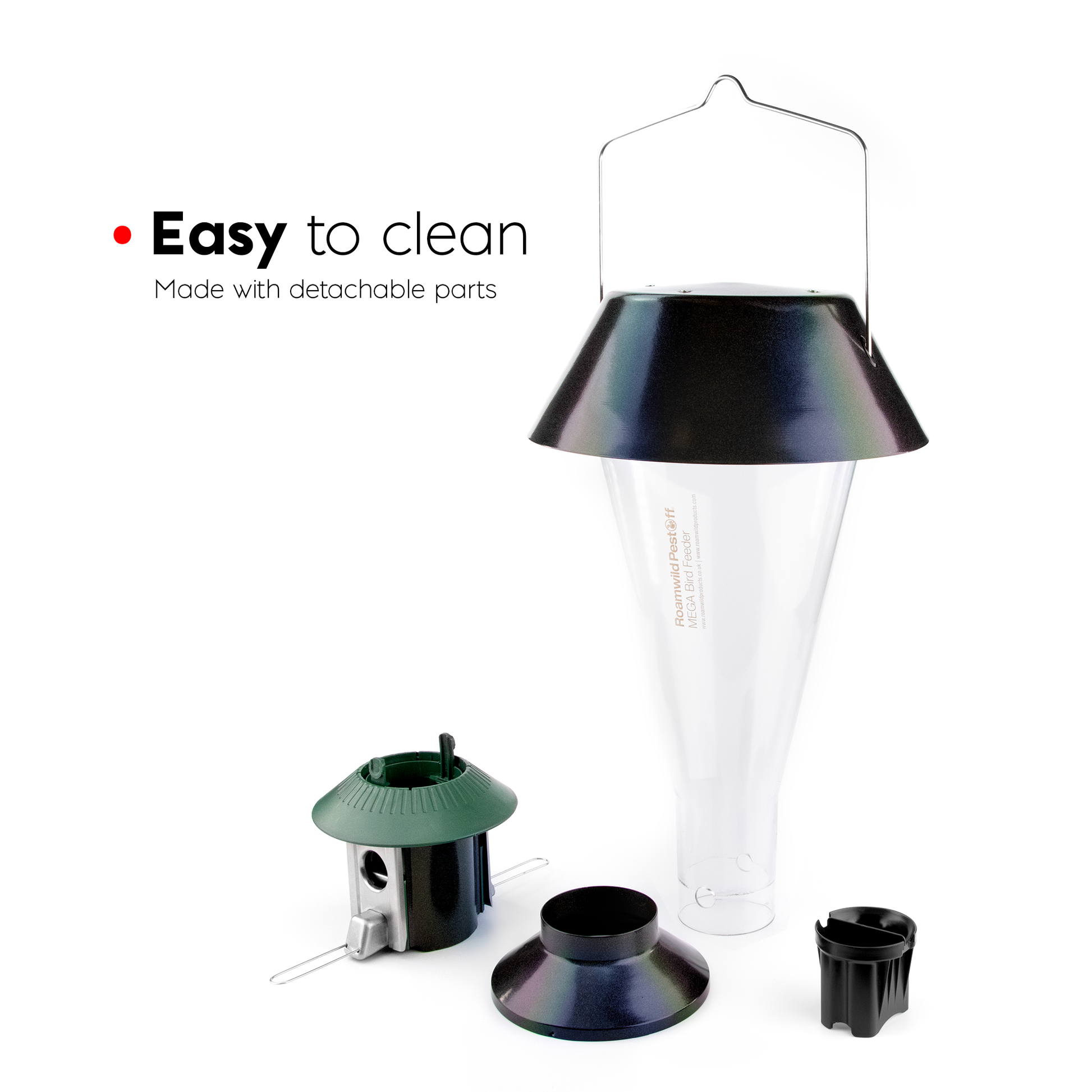 • Leicht zu reinigen und zu befüllen: Der PestOff-Vogelfutterspender ist sofort einsatzbereit und lässt sich leicht demontieren. Es war noch nie einfacher, Ihr Vogelhäuschen sauber und gefüllt zu halten.