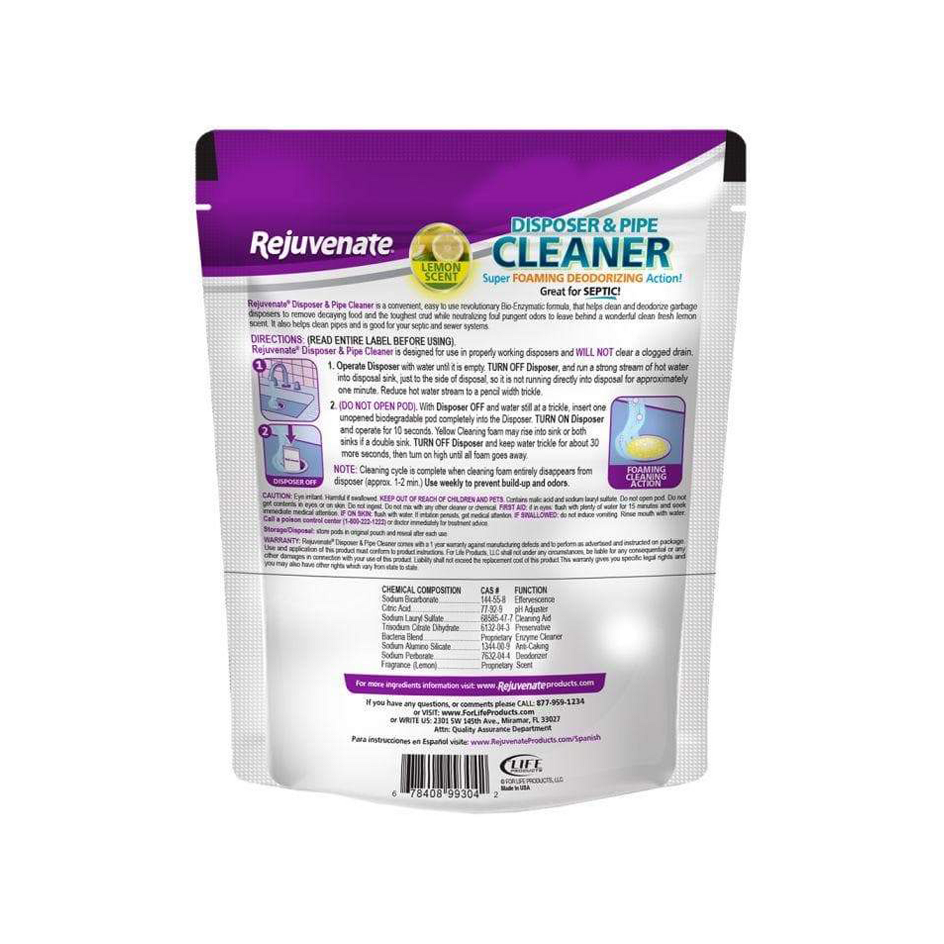 - Rejuvenate Disposal Pods worden onmiddellijk een afvoerpijpreiniger en ontgeuren om de geuren van afvalverwijdering te verwijderen