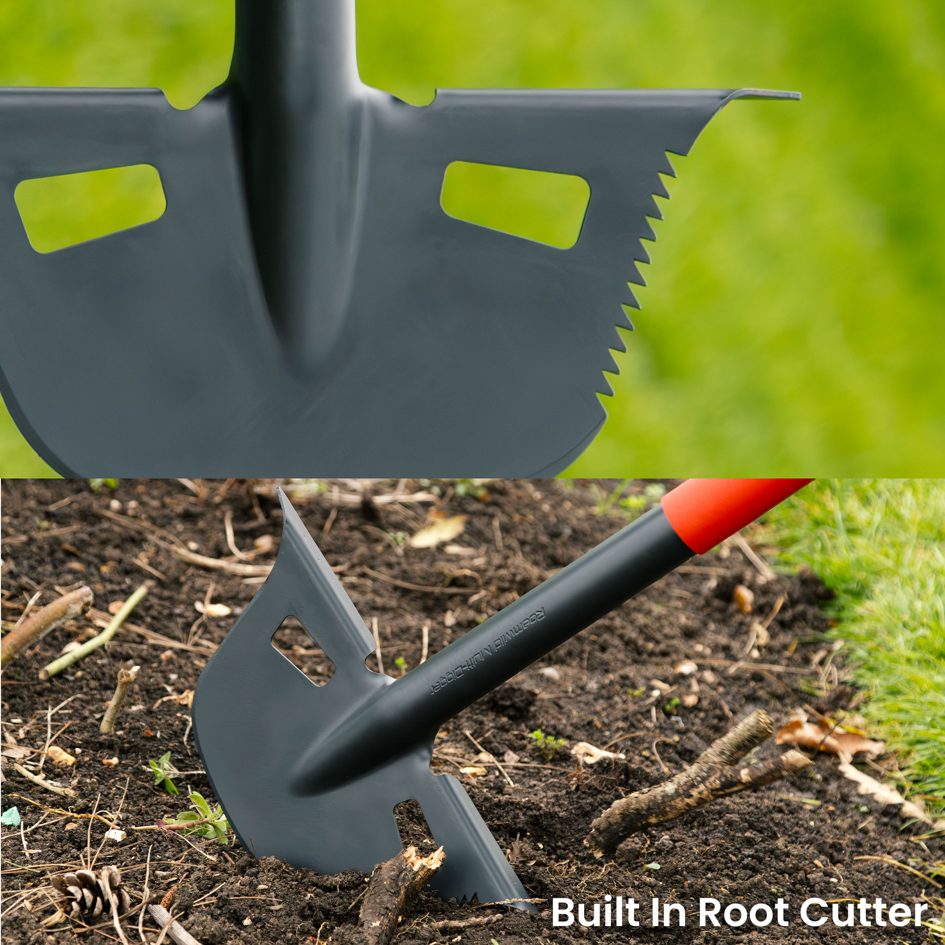 - Integrated Root Cutter: Equipped with a built-in sharp root cutter, it cleanly and effortlessly slices through roots and twigs, saving you time and reducing the need for additional tools.
